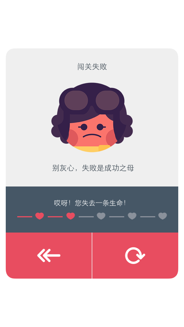 人们常说「失败是成功之母」,每一次闯关失败都会消耗一点生命值,我们可以通过内购补充,也可等待 20 分钟让其自动蓄满。