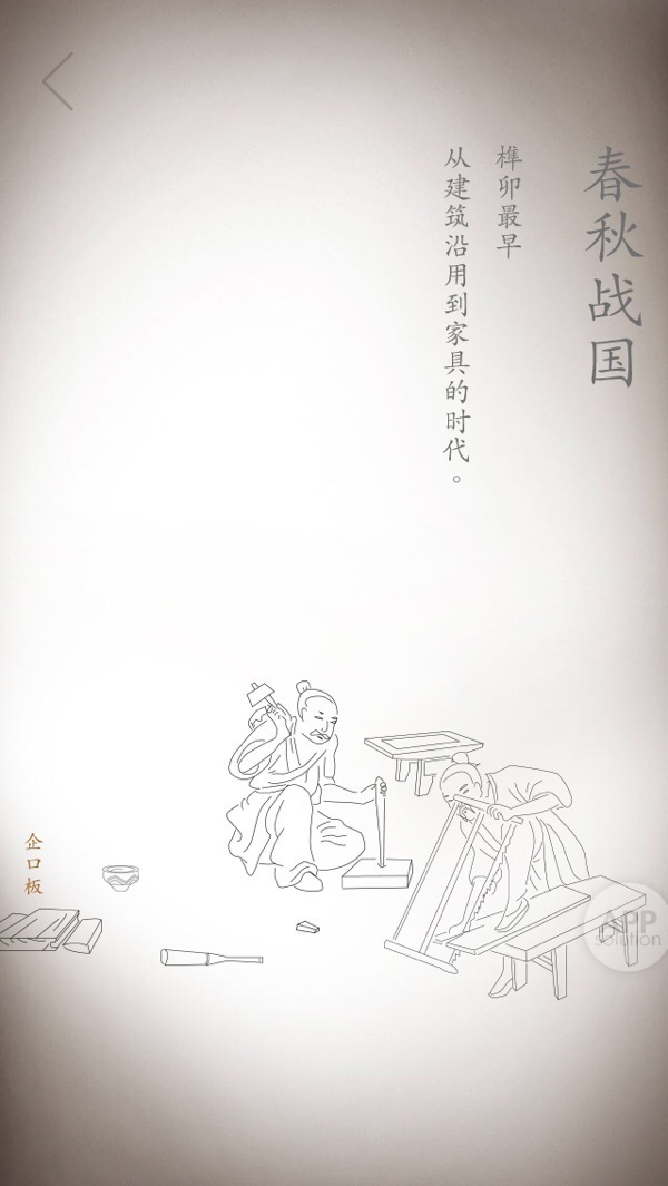 还有历史,在这里面配合着线条画,以及文字,你会看到榫卯的发展和足迹。