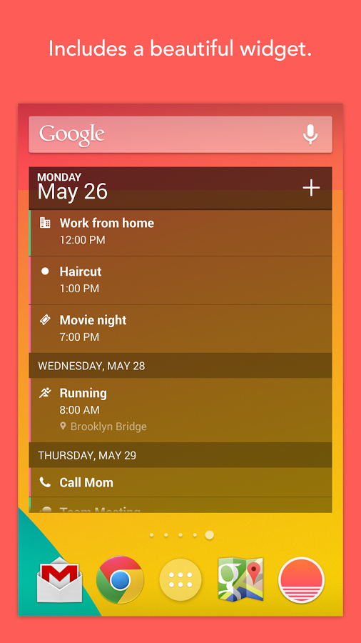 对于 Android 用户来说,美观大方的 Widget 自然少不了。精妙的设计也让日程直接浮现于桌面,扫一眼一目了然。