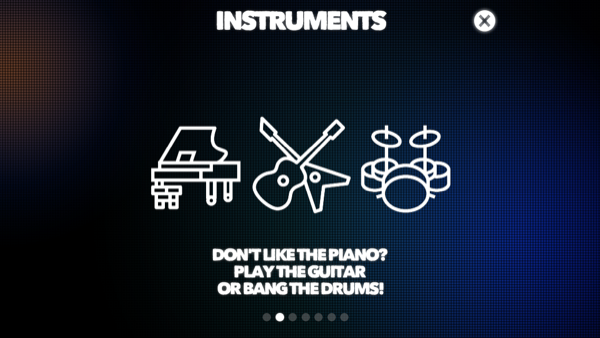 游戏提供钢琴、吉他和爵士鼓三种音色,不同的乐器带来不同乐感体验。