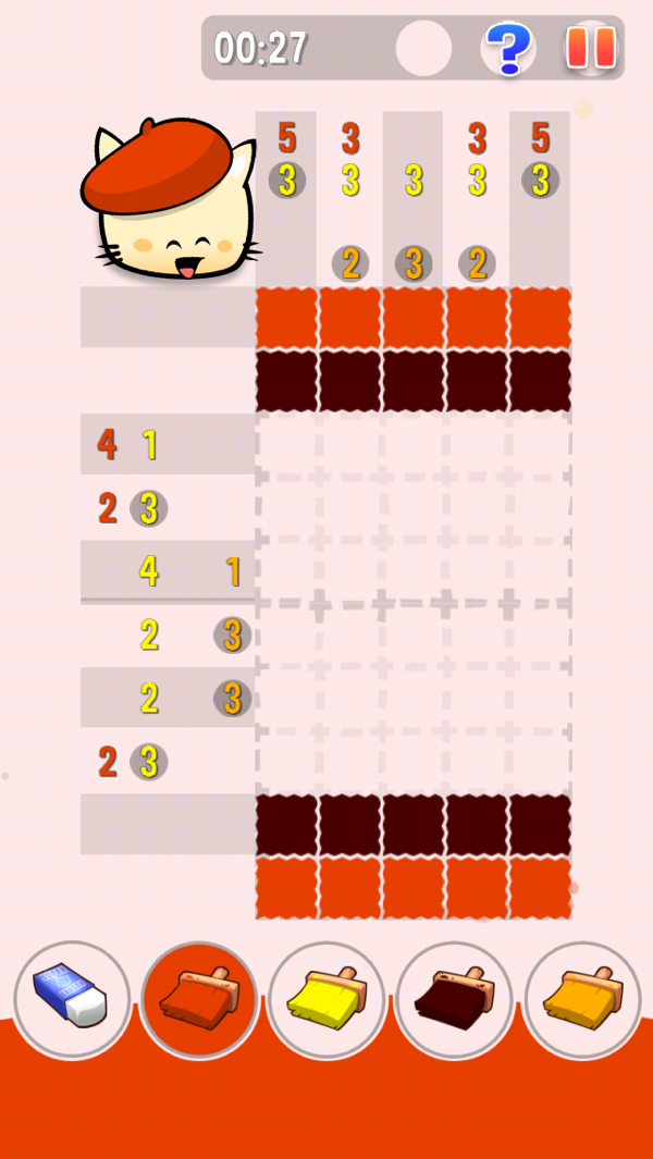 游戏在玩法上与我们熟知的「扫雷」和「数独」有着许多相似之处。玩家需要依据方格画板四周带有颜色的数字提示,选择相应颜色点绘画板上「空白方格」。数值代表这一行/列所需点绘该颜色的个数,如需连续点绘系统会以灰底气泡标记。