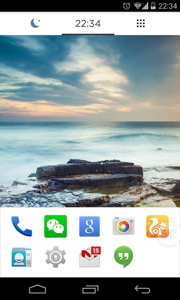 Yahoo Aviate 的一大特点在于,对于不同场景,它能智能地提供对应的功能。比如在工作场景下,它能第一时间提供邮箱日历等工作应用;当插入耳机时,它又能迅速切换成音乐模式等等……主屏左划即可手动切换模式,当然你也可以搭配各种桌面小部件使用。