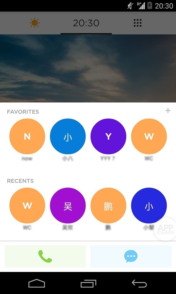 在主屏向上划会出现联系人列表,随时联系最近联系人和星标联系人。