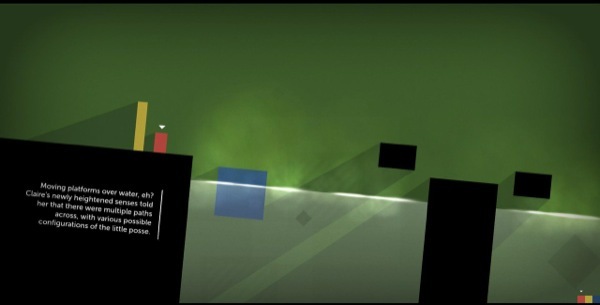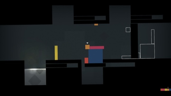 单看游戏画面 Thomas Was Alone 更像一幅抽象派几何画作,因为它简单得不能再简单。但它与哪些空有其表的快餐游戏相比,却更具内涵,简单毫无亮点的几何元素,表现出的是更深层次的生命涵义。