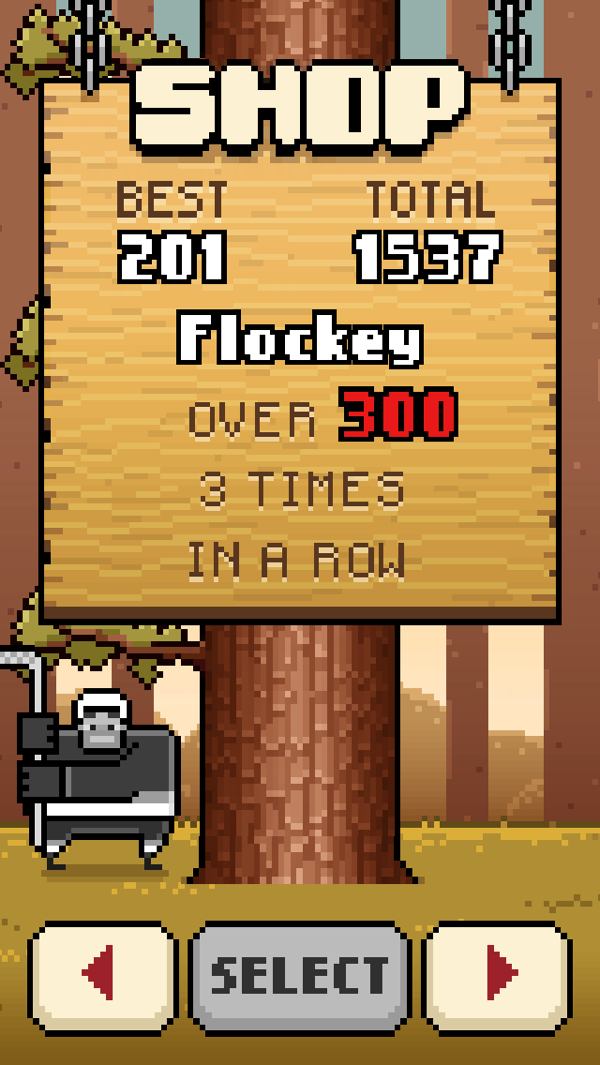 游戏的机制简单有趣,玩家只需不停地左/右点触屏幕砍伐一颗参天大树,同时躲避那些即将到来的树枝,若伐木工人不慎被树枝打到额头,游戏便 Game Over。