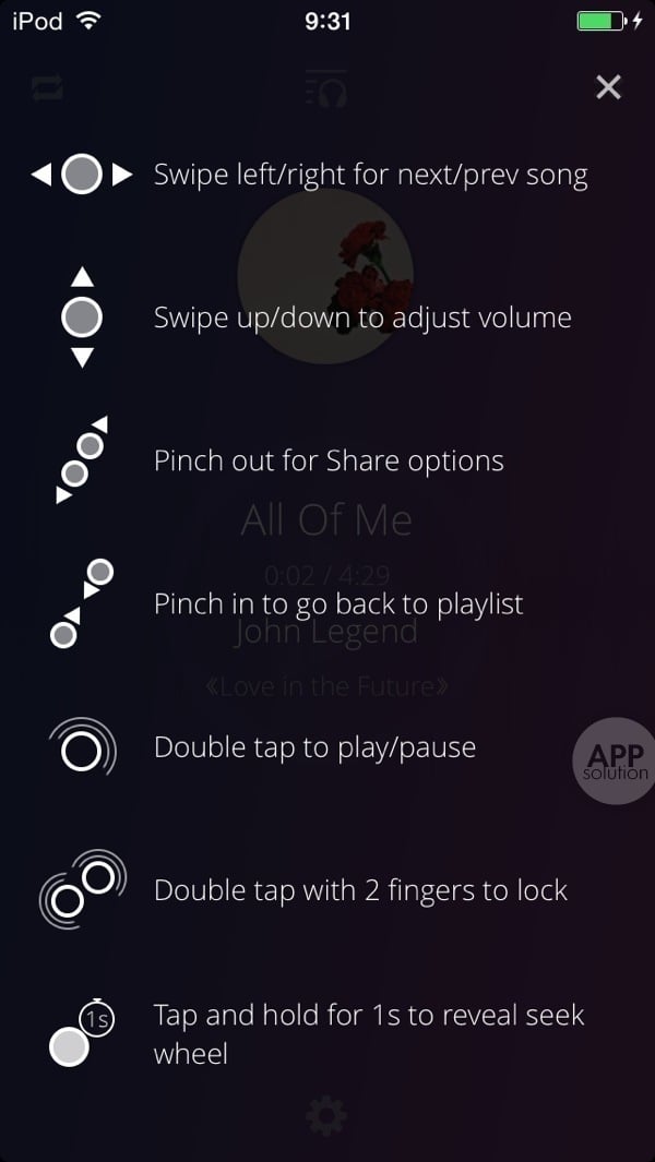 全手势操作:换歌,循环,音量,列表,这一切都可以用手势实现。