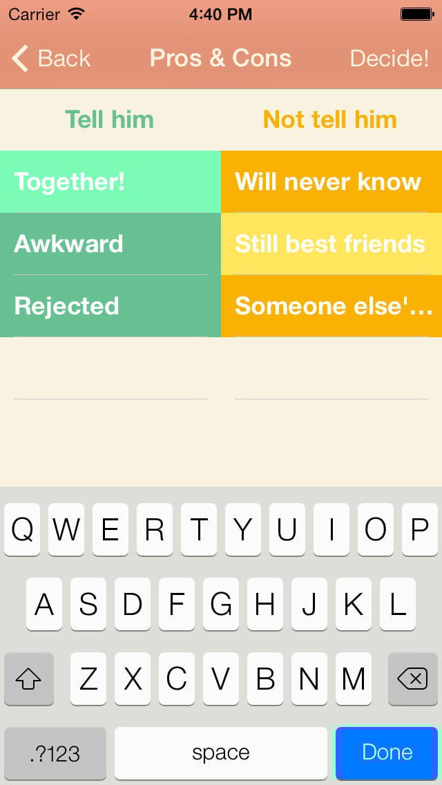 我们首先填上纠结的事情,例如:表白。