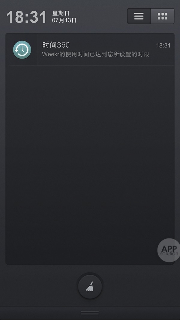 每个应用都默认分配了一个小时的时间限制(也可以自定义),超过时限会贴心地在通知栏提听你不要太沉迷哟。