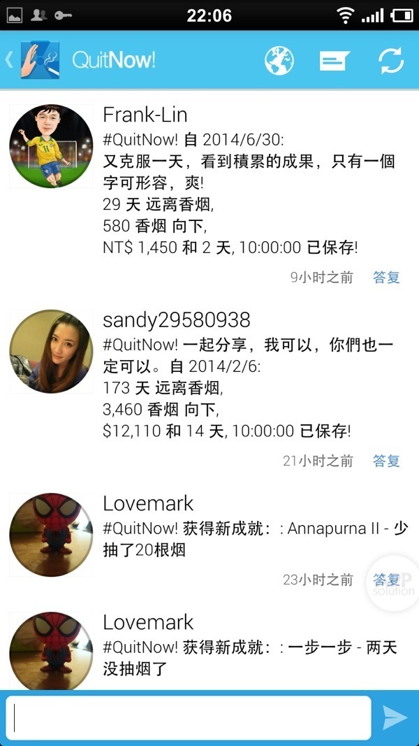 QuitNow! 是一款戒烟应用,在这里不仅能查看自己的戒烟记录,还有无数同样戒烟的小伙伴与你互相监督。还想着以后再找时间戒烟吗?为了健康身体,别再拖延了,现在就开始!