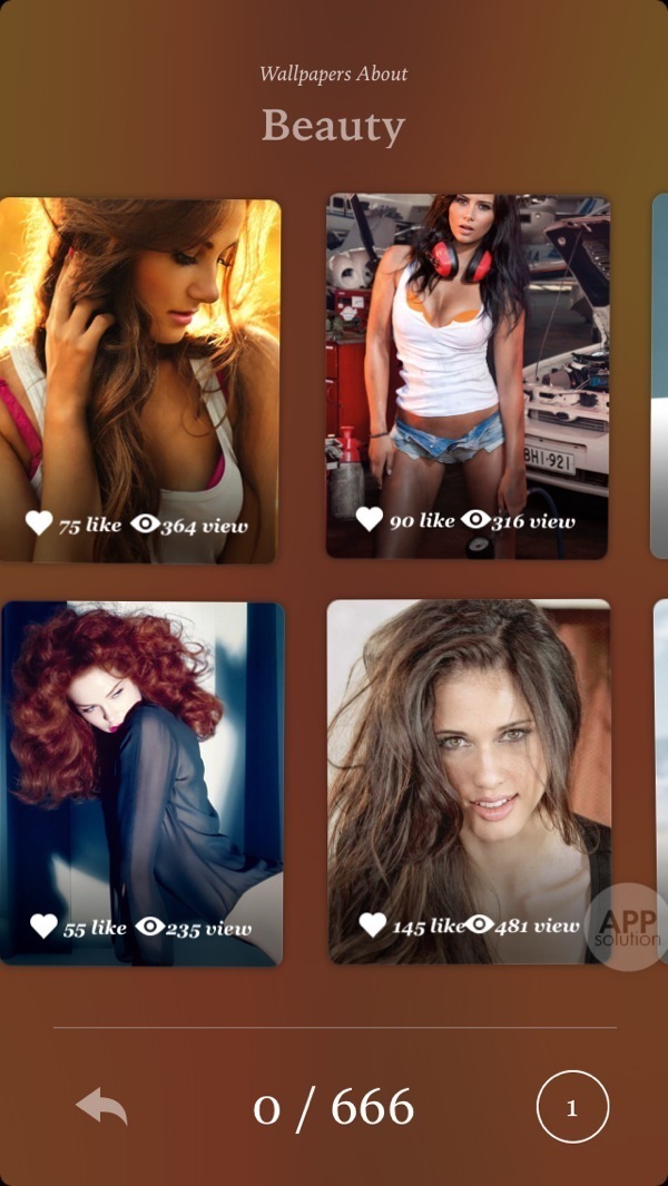 随意(真的是随意点到的)点进一个分类,你会欣赏到一个华丽又不拖沓的转场动画。壁纸仍旧是卡片式排列,有兴趣的话,你可以体验一下滑动的那种畅快感。