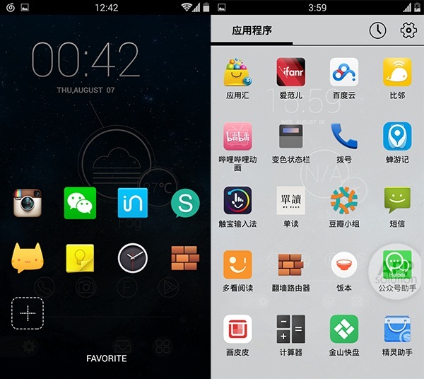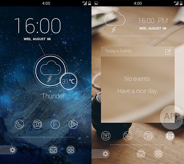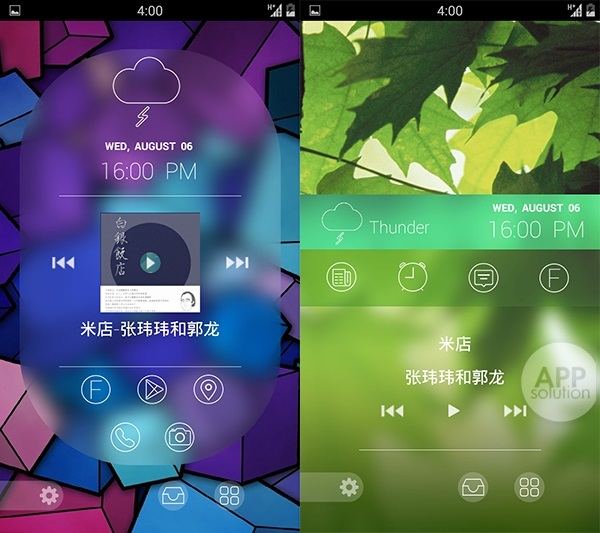 上面的桌面还不错吧?这款应用只有四款精美主题,只有一个主页面,点击主题就能直接套用,不需要做任何调整。天气、闹钟,音乐、快捷入口都帮你准备好啦。