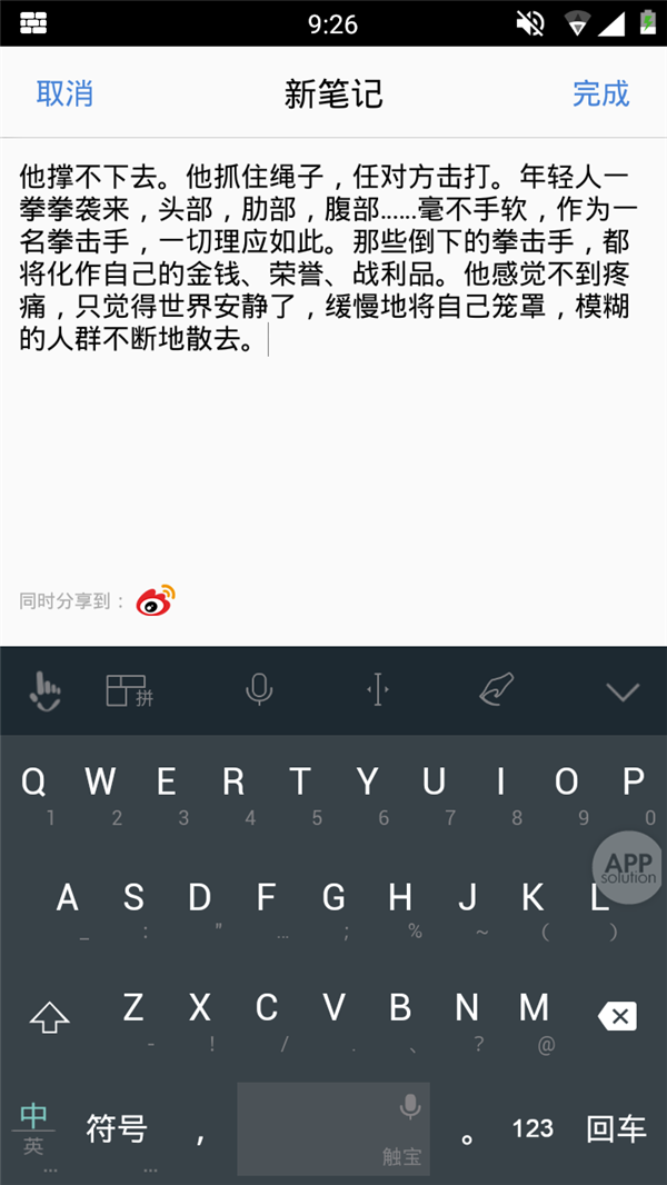 在单读登录帐号后,阅读时按住文字便能自动存为笔记。
