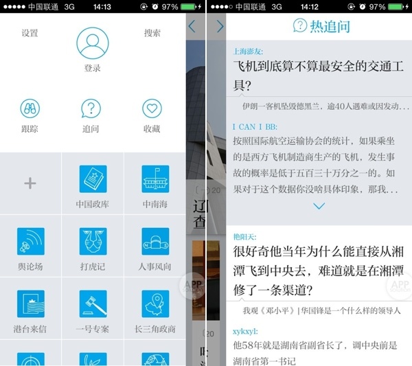 所谓的「新闻与思想的最大平台」究竟是宣传的噱头还是真正的创举?这或许是一眼可见的改变——它最大的特点就是让用户能够与其互动,这互动不是当下所流行的只开设一个评论或者点赞功能就够了,它是让用户能够随时随地的跟踪新闻、追问新闻、探讨新闻和分享新闻,你甚至可以在其中开设自己的专栏。