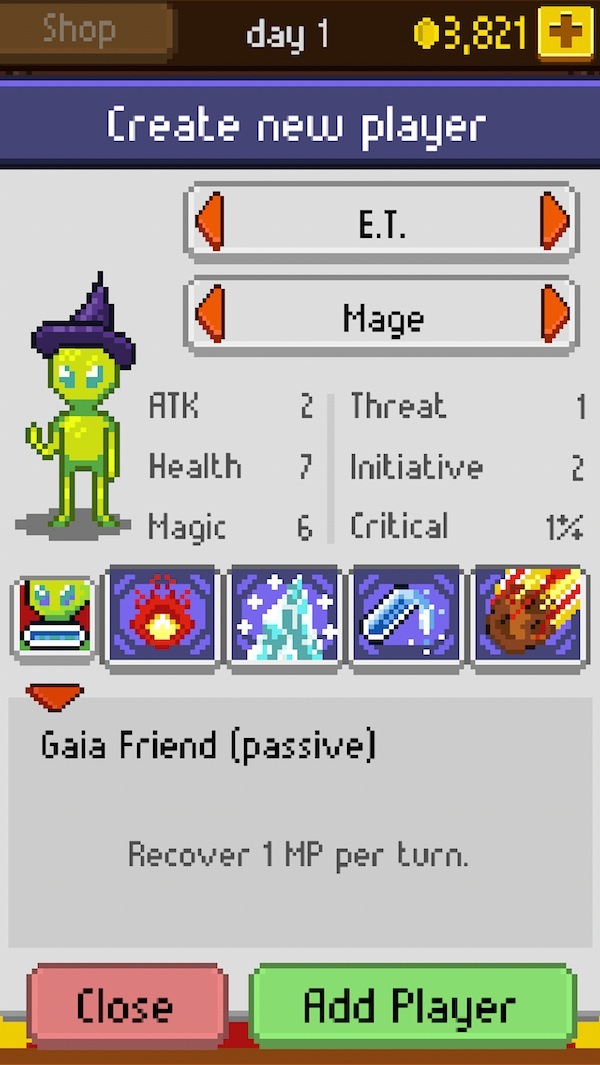 点击 New Game 后,NPC 主持人会要求玩家选择人物和职业。每个人物都会有不同的对游戏有推动影响的个性(比如小孩很好动,奶奶嗓门大,E.T.能回蓝,帕丽斯会砍价),每个职业有六个不同配点的属性和四个专属技能。