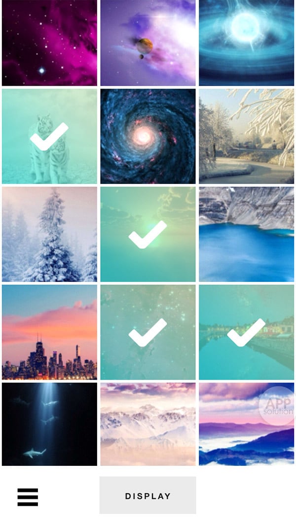 现在开始选择你要分享给身边人看的图片,点击底部 Display 开始展示。照片翻动的效果与 iOS 原生效果一样。