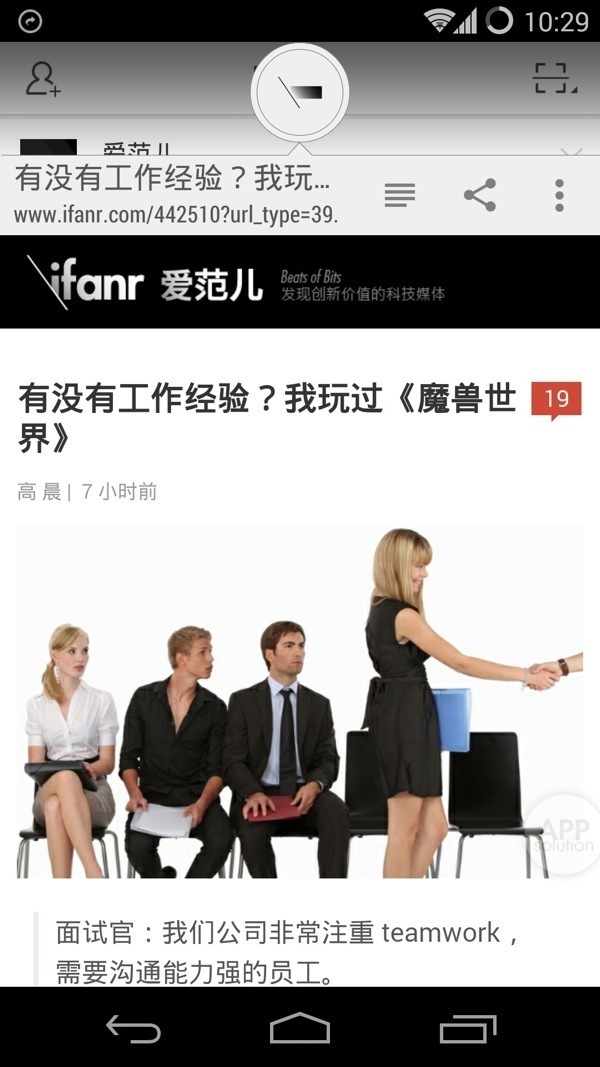 先拿大家最熟悉的微博来做演示。依照 AppSo 的设置方案,单击链接就会用 Link Bubble 打开(回复「Link Bubble 可以了解这个酷炫的浏览器)。