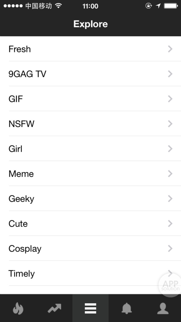 9GAG 将全部笑料细分为趣图、搞笑 GIF 、热门视频、 Meme 、神吐槽等十几个不同类目,你可以只对感兴趣的类别进行浏览。
