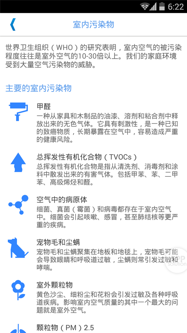 光有数据可不够,在应用中包含了对于各项空气指标的详细解释,说不定这就成了你茶余饭后的谈资呢?