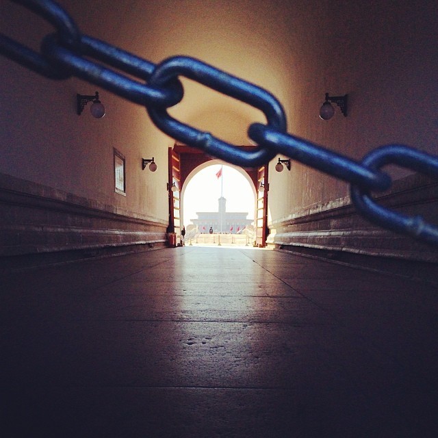借用道具表达:下图拍于某城楼,因为正门用铁链拦着禁止行人通行,就借用了下… … 🙂