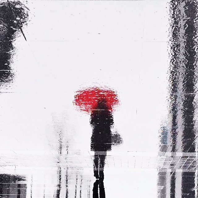 这张是下雨时的倒影,如果全幅看的话其实也没有什么特别之处,但我截取其中一部分,并利用单色凸显的 Color Splash 效果,呈现的就是江南春雨的感觉。请反转屏幕看就明白了。