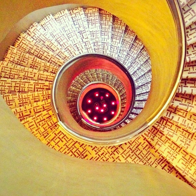 下面这张图片在 Instagram,Path 和 Flickr 上的点赞(击)都很高,吸引人的除了螺旋状楼梯独特的建筑形状外,更得益于内部的色彩设计和底部的 LED 灯饰光晕。
