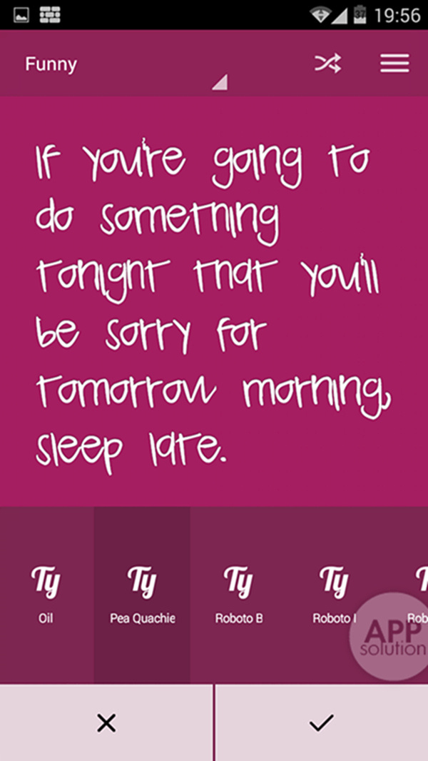 在 Kwote 你可以随意更改文字颜色,大小,位置,对齐方式和字体,虽然说字体略少,但是感觉够用了。