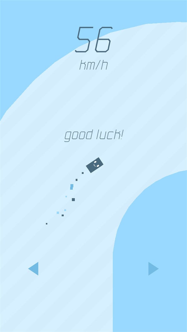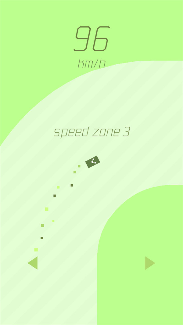 在游戏中玩家只需点击屏幕左右部分来操控小方块的运动轨迹。拐角处的漂移也要把握好,如果不幸碰到赛道边缘则游戏结束。而小方块也只会踩满油门向前冲,伴随着速度越来越快,背景颜色会不断变化,操纵也会越来越困难。