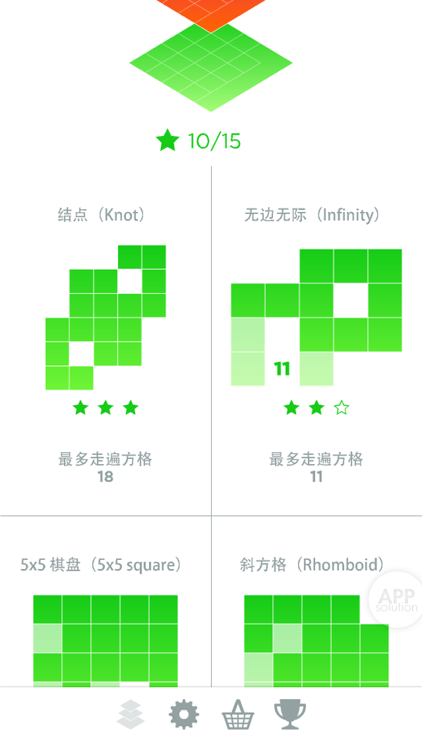在你不断追求完美破解棋盘的道路上,还有 40 个成就称号等着你与 Game Center 中的朋友一较高下。