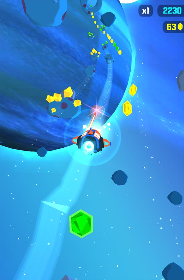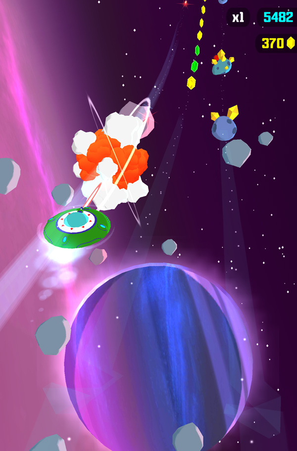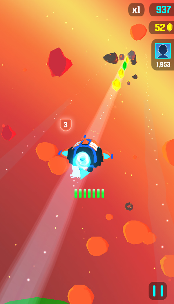 三条轨道的设置让游戏回归传统的跑酷,需要躲避飞来的陨石和宇宙垃圾同时收集金币。