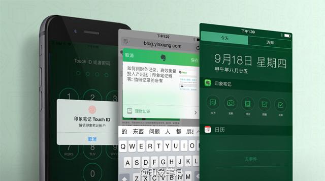 3. 用户将能够选择使用 Touch ID 登录印象笔记,无需输入密码,记录变得更加方便。指纹解锁功能目前为高级帐户功能。