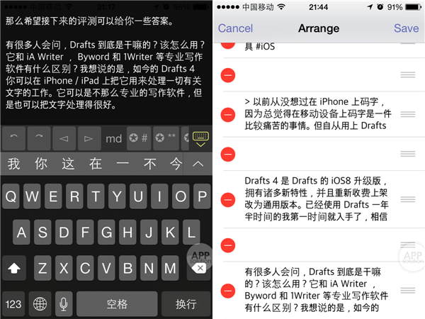 有很多人会问,Drafts 到底是干嘛的?该怎么用?只听说过它有多么多么地强大。而它和 iA Writer,Byword 等专业写作软件有什么区别?我想说的是,如今的 Drafts 4 你可以在 iPhone/iPad 上把它用来处理一切有关文字的工作。它可以是不那么专业的写作软件,但是也可以把文字处理得很好。