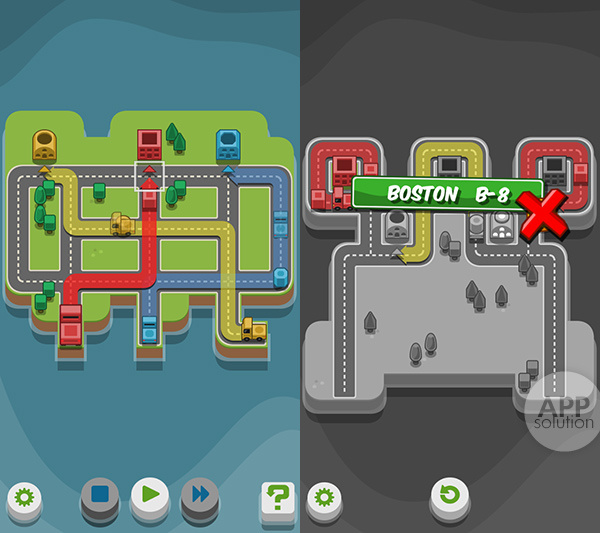好了,我们上路吧。你需要提前规划好每辆车的进行路线,规划好路线之后点击底部小三角开始运行。快递车就按照你设定的路线开始跑啦。虽说操作简单,但你还需要考虑交错路线中车辆行驶是否会造成相撞,避免路线重叠。