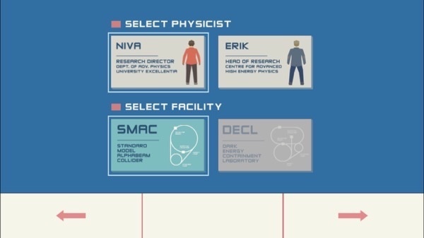 进入游戏后先选择人物,其主角是一名科学家,你需要控制这名科学家来跑过一个粒子加速器,并努力发现新的粒子。
