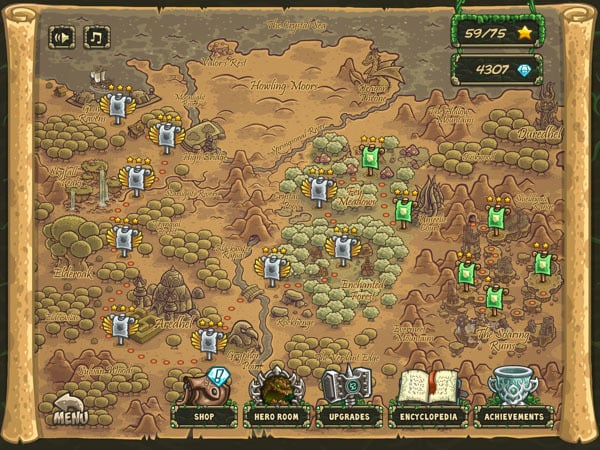 当然,虽然说是 TD 游戏,但可不是你随便建几个建筑,然后去喝杯咖啡回来就可以坐享其成的。KR 延续了三级难度的模式,玩家可以自由切换,并且在每个关卡的三个难度之上还有两个挑战模式,即便你选择最简单的模式,也需要你深思熟虑的去构建和策略才能顺利过关,这也是为什么 KR 系列深受玩家的喜爱。