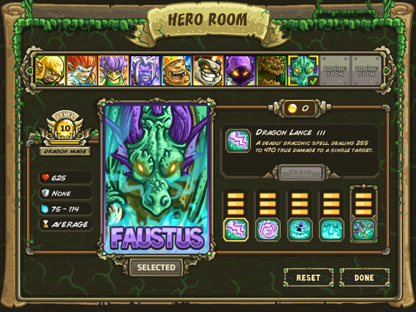 更有趣的,也是 KR 的独特之处是加入了英雄与道具,发挥不同英雄的特点以及使用不同的道具,让游戏变得更加丰富。KRO 提供了 9 个不同的英雄,其中前 3 个免费为玩家提供,后面的则需要解锁,根据以往的版本,英雄的数量还会不断的增加。这里有两个彩蛋,你可以看到第一代 KR 里 Denas 年轻的模样,和上一代 KR 里的最终 BOSS Vez’nan,当然,你也能看到很多曾经熟悉的影子。