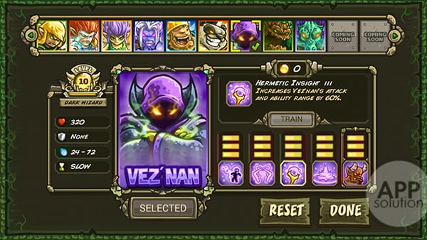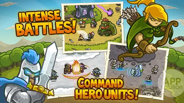 大多数的塔防游戏都让人觉得攒够经济建好防御塔就能坐等胜利,但既然是「神作」,Kingdom Rush 的游戏设定自然要让你放弃这种休闲的方式。Kingdom Rush 系列拥有其英雄及其技能体系,可以主动操控英雄,使用技能。