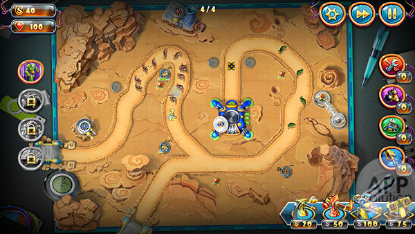 Fieldrunners 系列作为一款塔防游戏,不单单只有敌人沿路进攻这种单调套路。甚至不同其他游戏的花哨设定和惊喜彩蛋,Fieldrunners 专注排兵布阵,带给我们最纯粹的塔防体验。