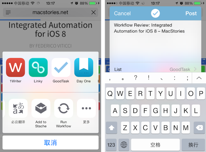 为 iOS 8 设计的 GoodTask 同样少不了对 Share Extension 和 Today Widget 的支持。