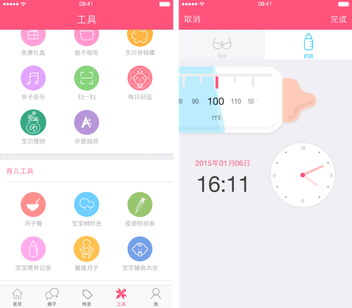 不得不提的还有它配套的近 20 种贴心工具。从看懂 B 超单、疫苗时间表、孕期食谱,到细致入微的宝宝喂养记录工具——「宝宝吃奶奶、拉臭臭,睡觉觉一手掌握,轻松搞定不慌乱。」
