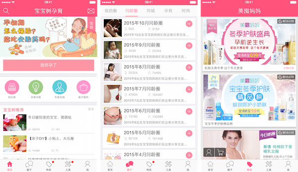 除了以上介绍的这些,宝宝树孕育还有人气超高的圈子供妈妈们社交,以及专门的「美囤妈妈」频道推荐一些值得囤的美妈良品,在这里就不做过多阐述,由大家自行探索。