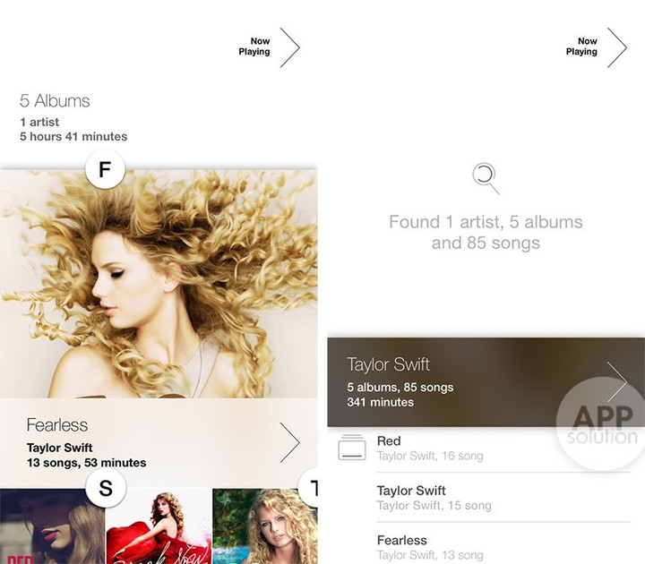 面对冗长的曲目列表,不知道该听什么?Cover Play 早已为你准备好。每当显示主界面时,Cover Play 都会随机提供一首歌曲。点按播放后,其后的播放列表会立即重新排列而生成全新列队。封面曲目亦可被直接添加至播放列队的置顶或队尾位置。