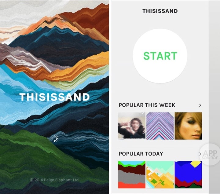 Thisissand 并不完全像传统沙画那样操作,但也有很多相似的地方。打开应用,欢迎界面之后,点击大大的 START,开始作画吧。