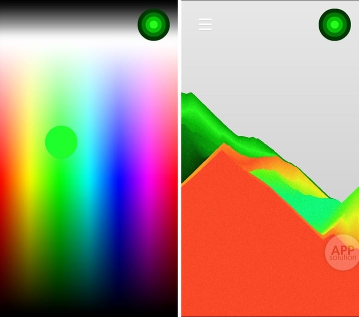 Thisissand 的操作十分简单,按住屏幕,沙子即会下落堆积。右上角按钮打开换色菜单更换颜色,从上至下依次为:换色,随机取色,摄像头取色。Thisissand 的重力模拟十分真实,沙子会从高处向低处流动,同时还会有沙沙的声音。