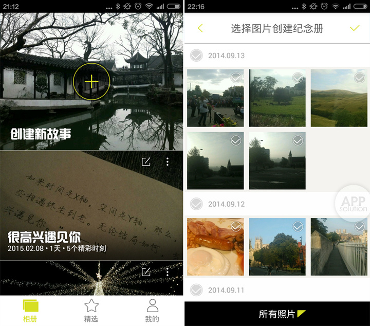 在首屏点击创建新故事,即可勾选照片,生成故事。点击播放,伴随动画与背景音乐的展现,旅途的故事就此缓缓展开。