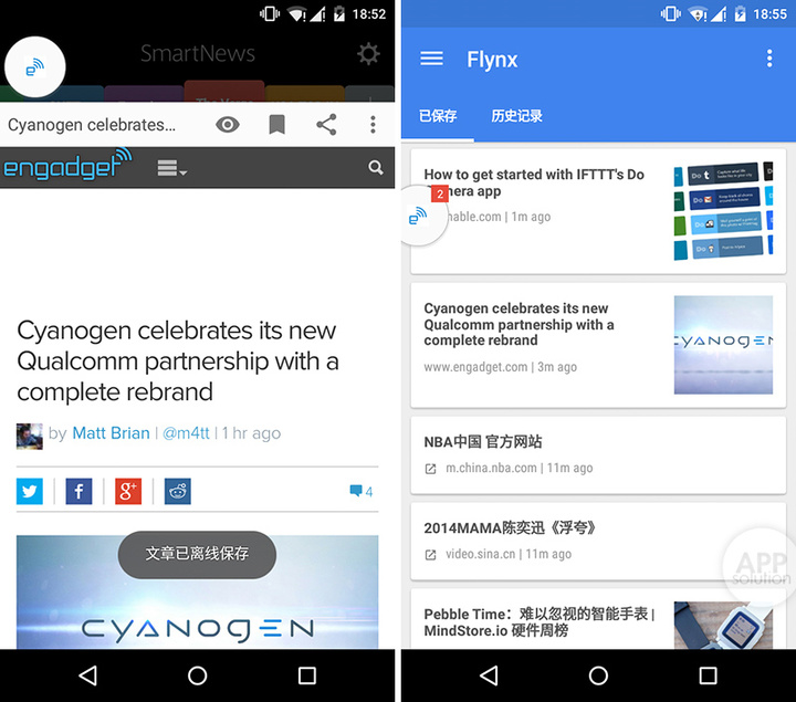 如果你是一个 Link Bubble 免费版用户,真心建议你换用 Flynx,更多的气泡、双击离线文章、纯粹的阅读模式。如果你是 Link Bubble Pro 用户,和 Flynx 相比也各有优势,或是单纯把 Flynx 当作一个「稍后阅读」聚合器也未尝不可。