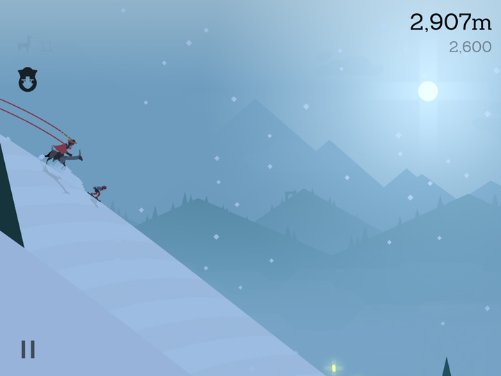 在白雪皑皑的深山里,踩着滑雪板,追捕逃跑的美洲驼,还有一个发狂的山中长老千方百计地阻挠你,这听起来是一个很疯狂的故事,但在 Alto’s Adventure 里,这一切都充满了禅意。