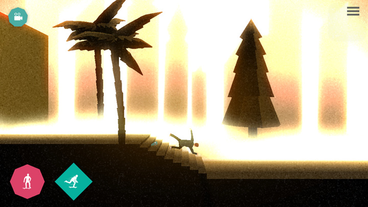 在游戏过程中,路上会不断出现障碍物,比如长椅、阶梯等等,如果你不能很好地操作游戏人物就会跌倒。Skate Lines 设计十分合理,当前方是普通障碍物时呈现的是近景,当前方有连续台阶时则会拉成远景,让你能提前看清前方路况。整个远近镜头的推拉特别流畅,就像看电影一样。