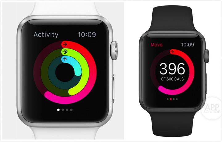 健康与运动是 Apple Watch 最看重的领域之一。Activity app 可以展示你每日的运动量,无论是行走消耗的卡路里,还是锻炼的时间,都可以很清晰地展示。