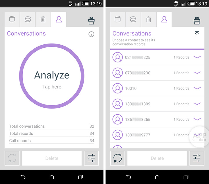 The Cleaner 不仅能做到这些,它还可以将你的通讯记录变得更清洁!它可以方便又快捷的为你删掉那些长时间未读又冗杂的广告短信,还可以随时帮你一键清除通话、短信记录。