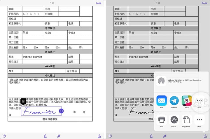 填写完成后可以 .PDF 格式分享,亦可直接导出。